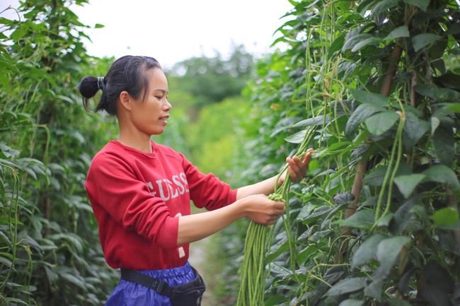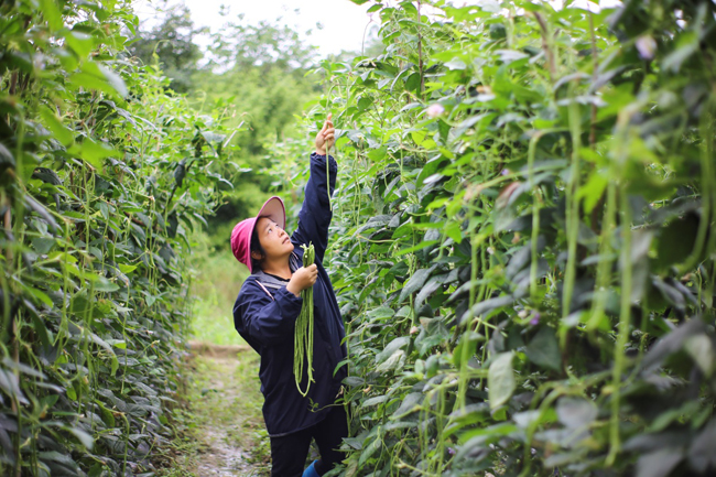 肖富珍在采摘豆角