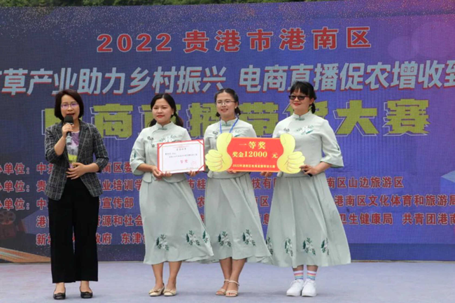 5月22日,港南区“艾草产业助力乡村振兴,电商直播促农增收致富”直播带货大赛在港南区新塘镇山边村草坪屯举行。港南区委副书记张慧红、副区长覃星琴及贵港市农业农村局副局长梁仲益等领导出席活动并为获奖队伍颁奖。