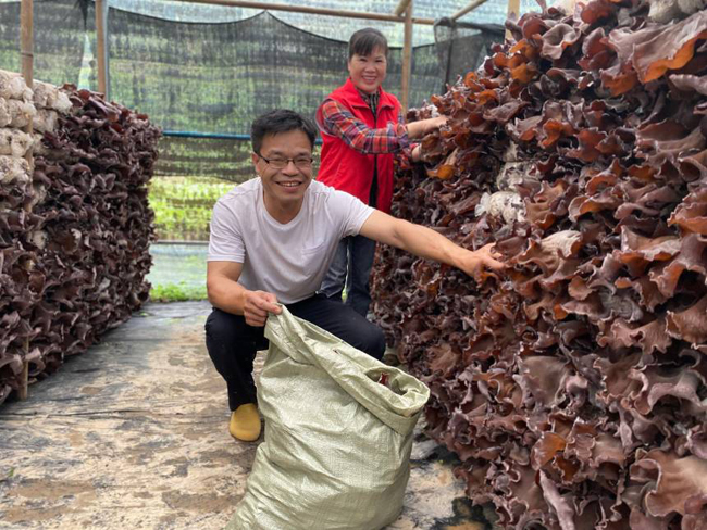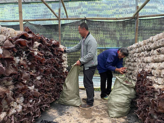 近年来,该村以党建为引领,抢抓螺蛳粉产业发展机遇,充分利用村集体经济发展毛木耳产业。基地共有14个毛木耳种植大棚,培育35万菌棒,每日采收3万斤。