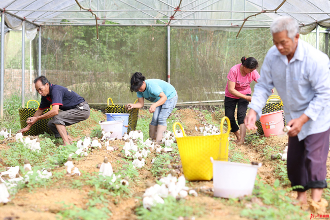 为稳步拓展竹荪产业发展水平,今年以来,湴山村开发了入园采摘体验、网络电商销售、朋友圈经济等模式,显著提高了湴山竹荪的知名度和销量。目前湴山竹荪产销两旺,今年村集体经济收入预计突破15万元。