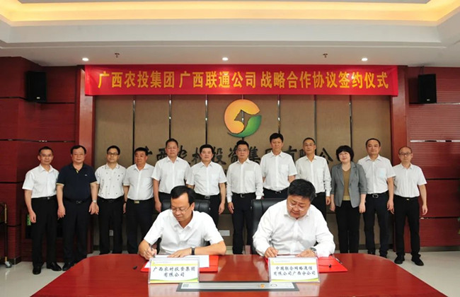 6月13日,农投集团与中国联通广西分公司签订战略合作框架协议,标志双方正式建立战略合作关系,向构建央地合作新模式迈出坚实一步。中国联通党组成员、副总经理唐永博,中国联通广西分公司党委书记、总经理孙江山,农投集团党委书记、董事长廖应灿见证签约。中国联通广西分公司党委委员、副总经理张海涛与农投集团总经理、党委副书记、副董事长莫菲城代表签约。