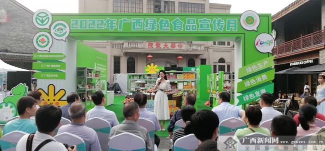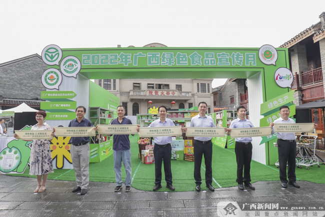 6月17日,主题为“绿色生产、绿色消费、绿色发展——绿色食品点亮生活”的2022年广西绿色食品宣传月启动仪式在南宁三街两巷举行。梧州六堡茶、百色芒果、融水紫黑香糯、桂林罗汉果、荔浦三华李、钦州大蚝、北流荔枝、陆川猪等37个优质区域公用品牌和企业产品品牌集中亮相展销,吸引众多市民纷纷抢购。