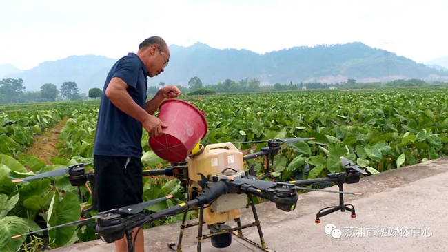 荔浦芋是荔浦市传统种植业,在荔浦市进行人工栽培已有400多年的历史。今年,全市荔浦芋种植面积超5万亩,预计年产量不少于8万吨。时下正值高温多雨季节,是预防荔浦芋芋疫病发生的关键期。近日,记者走进修仁镇平村村荔浦芋种植基地,有着20年种植经验的苏龙和正忙着配制预防荔浦芋芋疫病的药水。