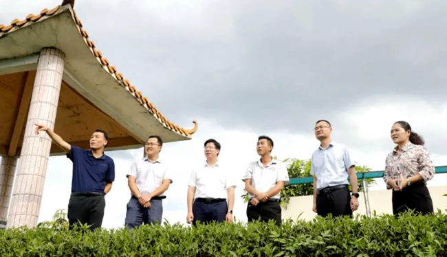 港南区委书记陶建全(左三)在木格北一港南区富硒有机茶产业示范区调研