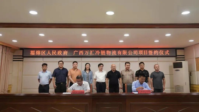 6月29日,在福绵区人民政府、广西万汇冷链物流有限公司签约仪式上,双方签约了总投资7.5亿元的玉林市万汇粮油综合交易市场项目。