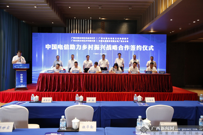6月28日下午,自治区农业农村厅、自治区文化和旅游厅、自治区乡村振兴局与中国电信广西公司签署战略合作协议,携手推动数字乡村建设。