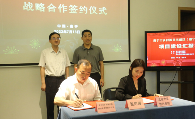 7月13日上午,广西南宁市乡村振兴示范区(邕宁片区)项目建设汇报会在南宁市邕宁区举行,自治区相关部门和区直企业领导及部分特邀企业代表听取了项目规划、建设单位的情况介绍。会上,南宁市乡村振兴和防止返贫致贫工作指挥部办公室、南宁乡村振兴集团分别与北京中昊智达控股集团签订合作协议。