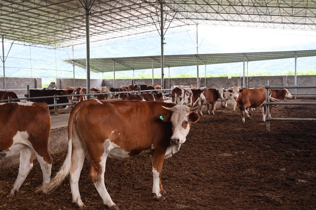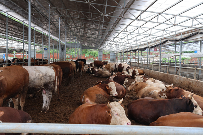 据了解,近年来恭城县委、县政府高度重视现代特色农业示范区创建工作,统筹谋划,多措并举打造嘉会肉牛产业示范区。示范区位于该县嘉会镇秧家村,以广西桂林牛水厄生态养殖场为核心示范区,按照“五区一厂一中心”的空间布局进行规划,分为现代生态养殖区、肉牛良种繁育区、饲料加工区、有机肥加工区、科普观光区和文化展示中心,用地规模793.4亩,配套发展牧草种植500亩。目前示范区发展肉牛养殖5500多头,年出栏2500头,主要饲养的品种有西门塔尔、安格斯和利木赞等优良品种。“这几年,我们与区内外大型企业、科研院所合作,在解决生物饲料、动物保健上游保障和肉牛屠宰、深加工及市场销售下游保障的基础上,加强品种改良、技术创新、疫病防控等研究,推广肉牛发酵垫料生态养殖模式,牛床进行‘微生物+’垫料布设,牛粪经过微生物发酵分解,祛除粪污异味并抑制有害病菌繁殖,将牛粪发酵、降解成优质的生态有机肥,通过定期更换垫料,并适时收集转置到储粪场进行堆集利用生物热再进行发酵降解处理,将发酵好的有机肥用于种植牧草,再将牧草作为饲料利用到养殖中,完全消纳养殖过程中所产生的粪污,建立了独特的‘青饲料—牛—有机肥’的循环发展模式,实现了对外零污染、零排放。改变“高成本、高消耗、高污染、低效益”的传统农牧业发展模式,促进生态循环农业建设。示范区内良种覆盖率、病死牛无害化处理率、牛养殖废弃物资源化利用率均达到100%。”广西桂林牛水厄生态养殖场负责人介绍说。2020年该养殖场先后荣获五星级“广西畜禽现代生态养殖场”“自治区现代肉牛生态养殖示范场”,2021年获得农村农业部“肉牛养殖示范场”称号。