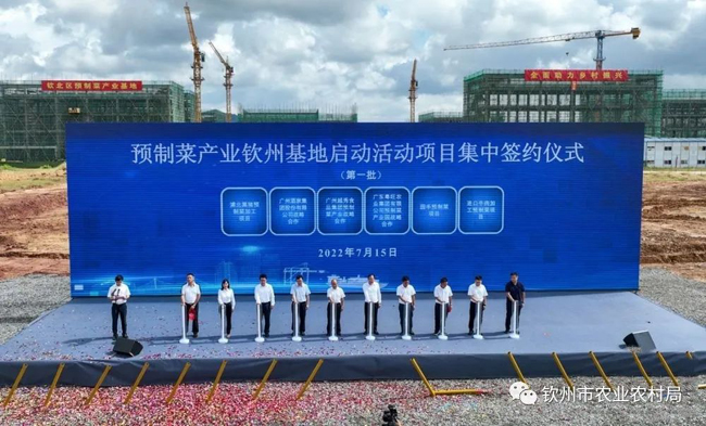 当天活动举行项目集中签约仪式,签订一批战略合作类、品牌合作类和产业投资类项目,将掀起钦州乃至广西预制菜发展热潮。其中,钦州市政府与广州越秀集团股份有限公司、广州酒家集团股份有限公司、粤旺农业集团有限公司、粤百年投资控股有限公司、顺德预制菜研发中心5家企业达成战略合作。组织签订雄鹰食品(预制菜)科技产业园开发项目、大兴食品(预制菜)智能化产业园开发项目、钦州预制菜及生鲜农产品供应链一体化项目等13个产业类项目,总投资28.5亿元。部分签约企业代表表示,希望通过签约合作,将各地优质农产品输送到预制菜产业钦州基地进行加工,利用钦州独特的区位优势,推动预制菜产品向RCEP成员国出口,实现多方共赢。