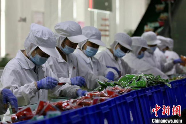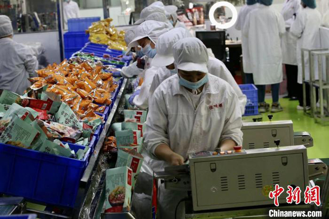 图为广西柳州市一螺蛳粉企业外包车间。