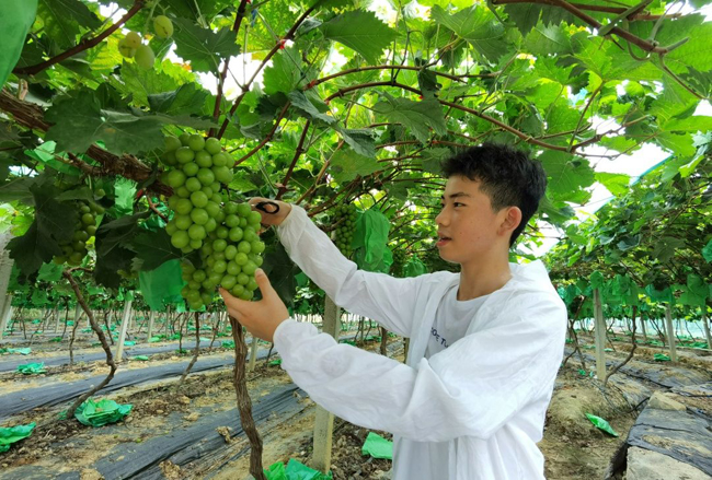 据了解,阳光葡萄园种植有60亩的阳光玫瑰,今年已经是第四年挂果,目前葡萄园还开放采摘观光游项目,吸引了许多游客前来打卡采摘。“除了销往浙江、南宁、横州、灵山这些地方,周末也比较多游客过来采摘,批发是10元一斤,采摘是15元一斤。”阳光葡萄园相关负责人陈兴定说。