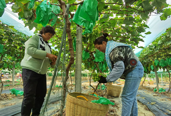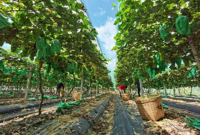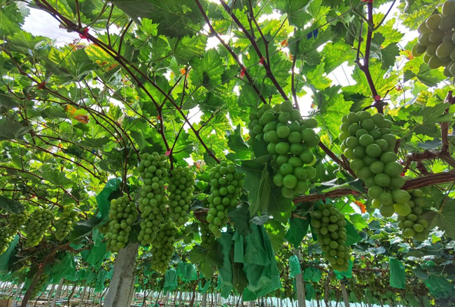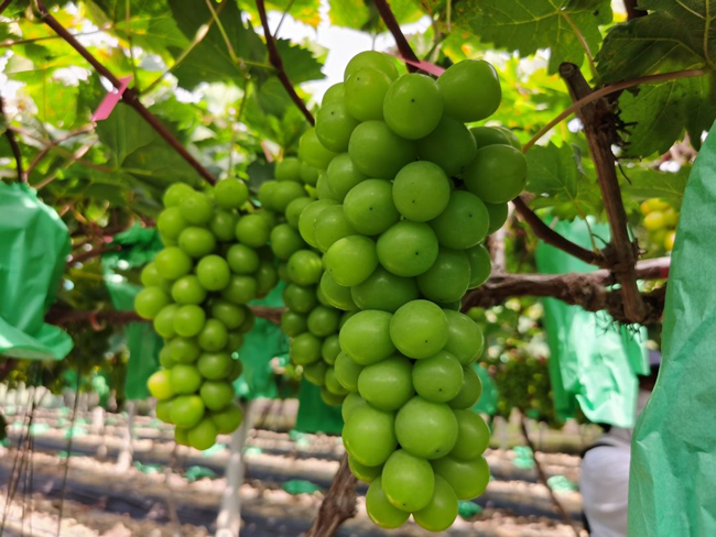 如今已实现国产化的“阳光玫瑰葡萄“,是一种欧美杂交品种,有着“葡萄界爱马仕”之称,在种植管护方面自然马虎不得。近年来,那阳镇阳光葡萄园在田间管理上下足功夫,聘请了专业技术团队管理果园,在技术人员的精心护理下,这里的阳光玫瑰品质上乘,颜值爆表,口感纯甜,果香浓郁,各地客商都闻香而来。