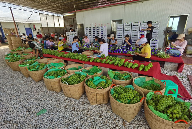 据了解,由于土壤气候适宜,加上技术到位,那阳镇的阳光玫瑰葡萄包揽了果亮、个大、肉脆、皮薄、高糖、花香等特质,不少老客户也是年年眷顾。“那么多地方种有阳光玫瑰,这里的果够大够甜,所以我每年都来批发,一次要一千斤,卖完了又来拿货,每天保证新鲜。”灵山的客商劳先生说。