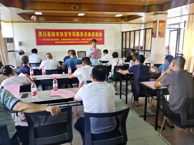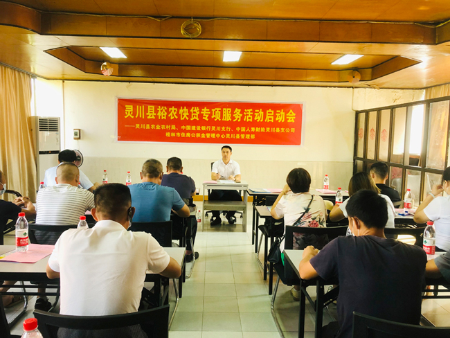 近日,灵川县裕农快贷专项服务活动启动会在中国建设银行灵川支行五楼会议室举行,灵川县21家养殖企业参加。