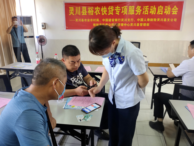 据中国建设银行灵川支行行长莫子恒介绍“裕农快贷”根据建总行及中银保通构建的“总对总”数据直连平台,直接在线授权获取养殖户农业保险数据,创新“农业保险+信贷”的线上服务模式,为农户提供在线贷款一站式服务,农户足不出户,只需在手机动动手指头,即可“秒贷秒还”,做实“手续方便、简单快捷”,真正做到为广大农户融资打通最后一公里!
