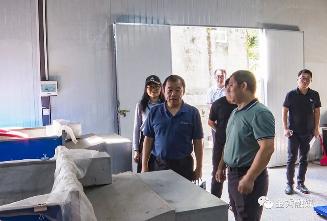 李斯华(前左一)一行来到茶香农庄制茶厂调研。