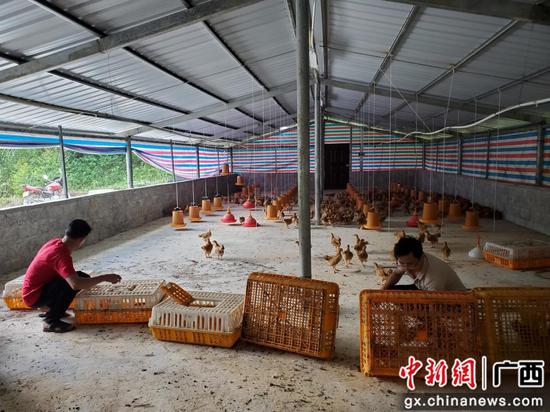 近日,在巴马那桃乡兰廷村那么屯小谷鸡养殖场基地里,基地负责人和兰廷村驻村第一书记正忙着将鸡苗搬到鸡舍里,刚出笼的鸡苗立即奔跑起来,一群群鸡苗让闲置的小谷鸡养殖基地一下子热闹起来。