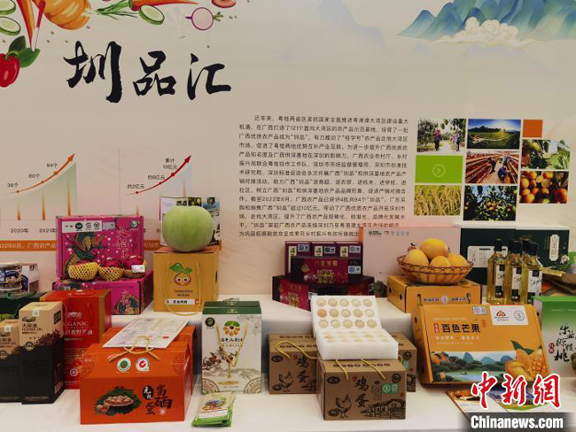 图为在2022年粤企入桂“双百”行动启动仪式暨广西现代农业产业链招商洽谈会上展出的“圳品”。