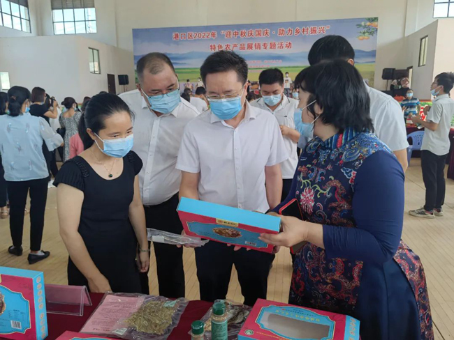 为深入贯彻党中央领导关于“开展消费扶贫行动”的重要讲话精神,开展消费帮扶,展销推荐港口区特色农产品,着力拓宽销售渠道,激发农业农村发展活力,实现脱贫人口持续稳定增收。9月5日,港口区举行2022年“迎中秋庆国庆•助力乡村振兴”特色农产品展销专题活动。区委副书记卢增出席活动并致辞,区人大常委会副主任、区总工会主席沈爱东参加活动。