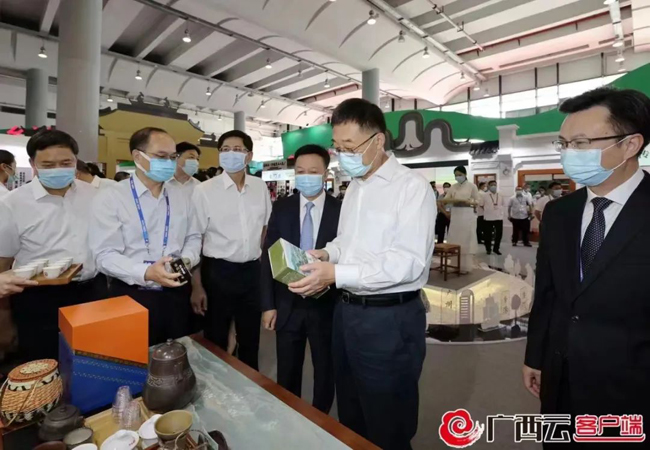 9月17日,自治区党委书记、自治区人大常委会主任刘宁,自治区党委副书记、自治区主席蓝天立,自治区政协主席孙大伟等自治区领导到中国—东盟博览会梧州六堡茶展区巡视,市委书记蒋连生、市长钟畅姿陪同并介绍相关情况。