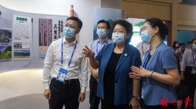 全国人大常委会委员、全国人大民族委员会副主任委员李康到梧州六堡茶展区巡视。