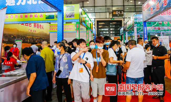 逛农业展,吃喝是必备,市民在各展位间流连,可尝尽广西美味,吃出产业融合的味道。