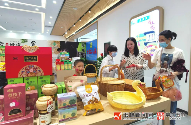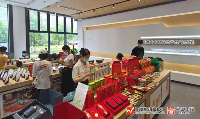 ▲玉林市乡村振兴产品展示馆内,特色产品琳琅满目。