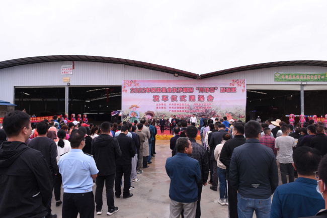 为迎接西林县享受自治县待遇30周年,做好2022年金秋沙糖桔上市销售工作,10月9日,西林县在西林泰源果业开发有限公司举行2022年金秋沙糖桔“开市日”活动暨发车仪式现场会。县人大常委会主任李正荣,县委常委、县人民政府副县长高建军,县委常委、县人民政府副县长余承君,县人大常委会副主任农永烽,县政协副主席农海燕,县政协副主席、古障镇党委书记陈勇任等领导参加现场会。