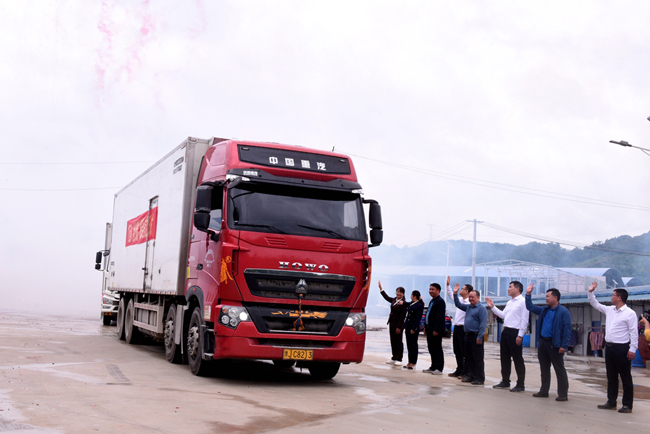 在一阵阵喜庆的鞭炮声和轰鸣的彩炮声中,满载2022年西林县金秋沙糖桔精品的运果车缓缓驶出果厂,发往北京、沈阳等全国各地。