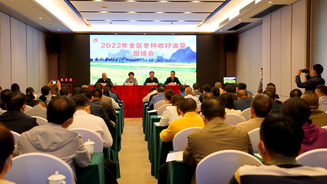 会议指出,要统一思想,深刻认识收籽油菜扩种的重要意义,扩种收籽油菜是保障食用植物油供给安全的现实选择、是农民增收的重要途径,冬种油菜有助于优化土壤结构,我区具有种植收籽油菜的气候优势,从种植到加工具有完整的产业链,目前全区已有10家规模以上大型油脂压榨加工企业进驻和投产,扩大收籽油菜种植的产业基础较好。