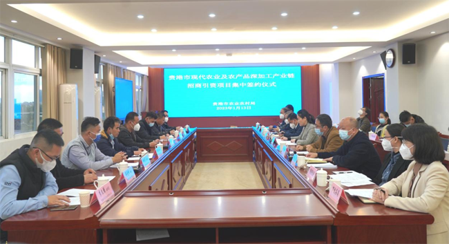 日前,贵港市农业农村局举办了2023年现代农业及农产品深加工产业链招商项目集中签约仪式。市委副秘书长,市委农办主任,市农业农村局局长,市乡村振兴局局长黄玉娟出席签约仪式。