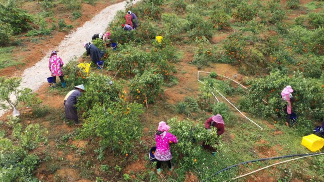天等县驮堪乡绿水青山沃柑果园负责人 粟高林:为了下半年的小果出来,我就及时把大果摘掉,保证下半年的(产量)至少要比今年的翻两倍。