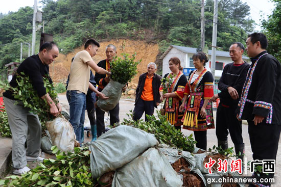 6月6日,广西桂林市临桂区黄沙瑶族乡农林产业发展党员先锋队,带领树苗、有机肥大货车车队穿梭在各村屯油茶苗发放点。村民们正紧张有序地搬运免费发放的油茶苗和有机肥,先锋队技术员还现场为种植户讲解油茶丰产栽培、油茶低产林改造、施肥、病虫害防治等技术知识及相关产业扶持政策,现场一片忙碌景象。