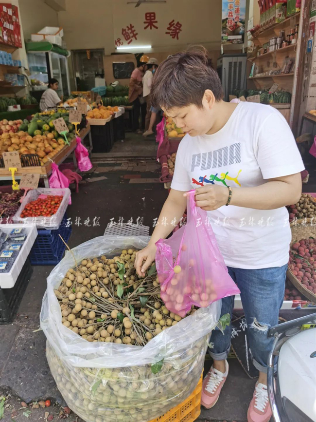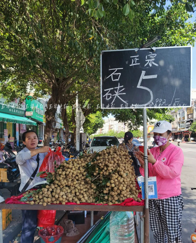 市民在路边买新鲜龙眼