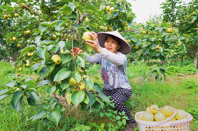 桂花梨果大皮薄,肉质细白酥脆、清甜多汁,耐贮藏,因此受到不少水果收购商和消费者的青睐。据了解,百登村近年来大力发展桂花梨种植产业,种植面积百余亩,亩产达4000多斤,亩产值0.8万元以上,成为当地群众脱贫致富的主要支柱产业之一。