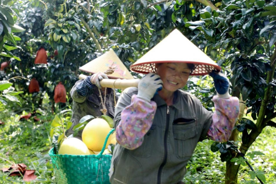 2015年,龙州县通过招商引资,广西山水弄岗生态农业科技有限公司进驻弄岗村,以农业产业和休闲旅游为核心,打造现代农业产业园。经过在龙州多年的不懈耕耘,在鹤山市驻龙州县粤桂协作工作组消费帮扶协作的努力推动下,该公司于2021年12月成功评定为广西供应深圳农产品示范基地,有力地推动了龙州县特色农产品出桂入粤登上大湾区“果篮子”舞台。该园区主要种植三红蜜柚、砂糖桔、沃柑等特色水果,每到施肥、剪枝、采摘的时候,优先聘用周边群众来务工,每年公司可提供80个就业岗位,带动群众增收致富,助力乡村振兴。目前,基地每天聘用30个工人到果园采摘蜜柚,为他们带来可观的经济收入。