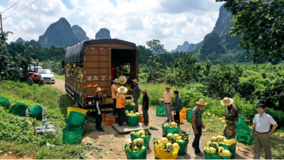 据了解,今年广西山水弄岗生态农业科技有限公司的200亩三红蜜柚进入丰产期,比往年产量高,预计总产量有30万斤。自三红蜜柚成熟开园采摘以来,每天都有客商上门收购,销路不愁。工人们抢抓时机采摘,争取抢在中秋节、国庆节到来之前采摘完,根据订单将一批批柚子销往全国各地。