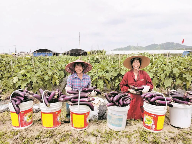 茄子丰收,菜农喜笑颜开。记者 李鹏钧 通讯员 陈俊伶 摄