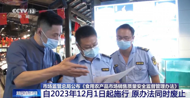 市场监管总局22日公布《食用农产品市场销售质量安全监督管理办法》, 自2023年12月1日起施行。2016年1月5日原国家食品药品监督管理总局公布的《食用农产品市场销售质量安全监督管理办法》同时废止。