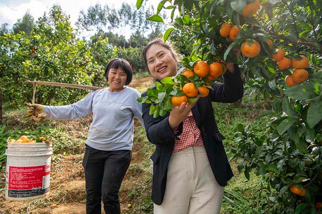 农户们在果园里采收砂糖橘