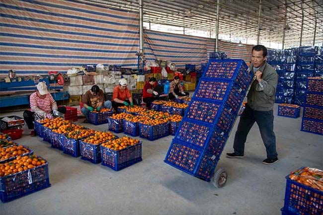 分拣好的砂糖橘即将运往全国各地