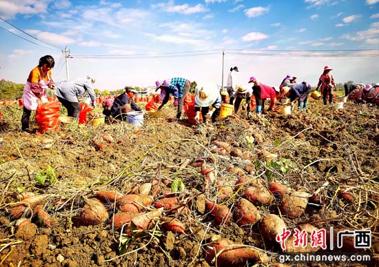 新街镇戈洞村田园生态家庭农场工人们正在抢收红薯。陆仕臣 摄