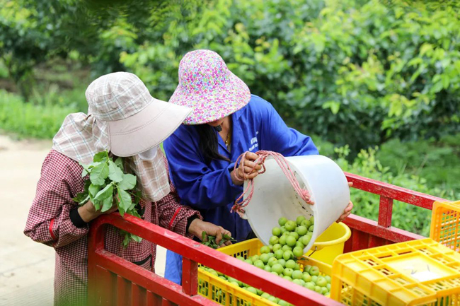 时下,天等县把荷乡千亩早熟三月李陆续上市。漫山遍野的李子果挂满枝头,果农正忙碌地采摘,田间地头呈现一派丰收繁忙景象。
