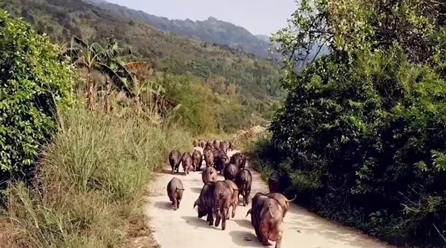 依托自然资源优势养殖的环江香猪。