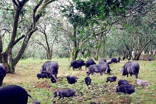 合作社生态养殖的环江香猪。