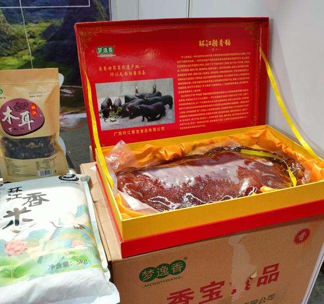 谈及环江香猪,它不仅是公司的明星产品,也是环江“五香”之一。这种原称为“明伦香猪”的品种,拥有悠久的历史背景。它们主要以山藤野菜和薯杂豆类为食,是大自然精华的结晶,具有肉质细嫩、味道鲜美的特点,深受消费者喜爱。香宝公司依托这一地方特色资源,将传统与现代科技相结合,致力于将其打造成一张响亮的地域名片。2011年9月,覃素鲜投入1600万元创办了广西环江香宝食品有限公司,打造了“梦逸香”品牌。如今,该公司年可加工香猪10000多头,产品远销全国各地,深受消费者喜爱。