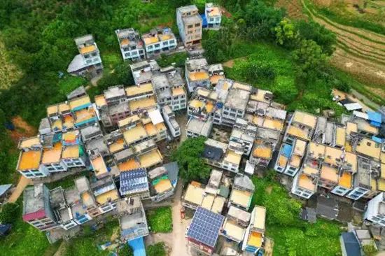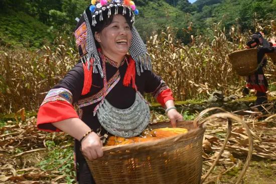 玉米喜获丰收,家家户户屋顶上一片片金黄色。