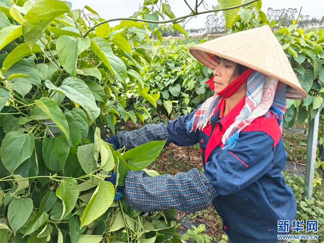 目前,宁明县星油藤产业链共招聘了1000多名本地工人,其中超过70%是脱贫人口。星油藤每年每亩平均可产5000斤鲜叶、梗、果,由于市场行情好,小小的星油藤正成为宁明县助农增收新产业。