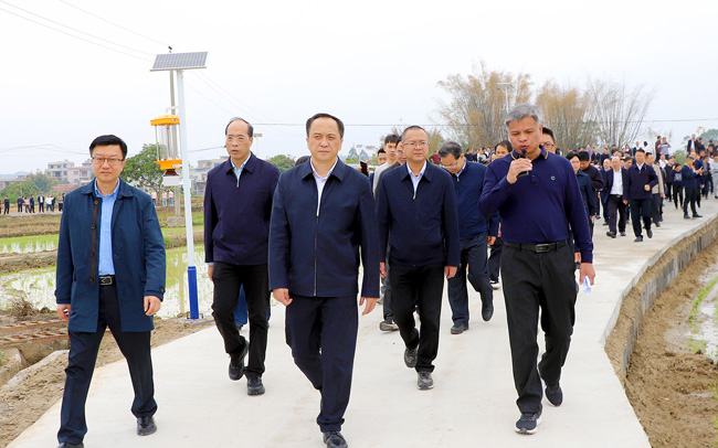 3月11日,全区春季农业生产现场会在玉林市玉州区召开。深入贯彻落实中央、自治区农村工作会议精神,分析工作形势,全面部署今年春季农业生产和小型农业水利设施建设各项工作。自治区副主席许显辉,自治区政府办公厅二级巡视员戴倩参加现场观摩和兴修水利活动。自治区农业农村厅副厅长韦波,自治区水利厅副厅长许林波出席室内会议并讲话,自治区农业农村厅二级巡视员翁丽平主持会议。