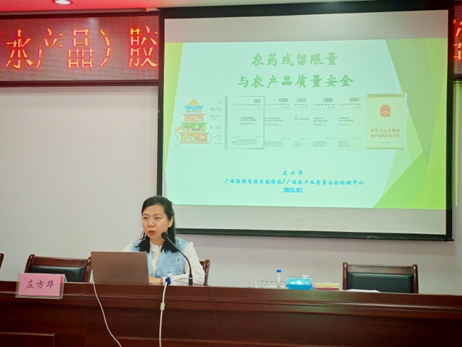为进一步加强柳城县农产品质量安全监管,保障农产品质量安全,3月26日,在广西自治区植保总站、柳州市农业农村局的指导下,柳城县农业农村局组织开展全县基层农兽药残留限量规定集中培训,旨在切实提升全县农产品质量安全监管能力和技术水平,广泛提高农产品生产经营者的法律意识和限量意识,加快推进农兽药残留精准治理,推进种植、畜牧、水产行业重点品种农残百日攻坚治理工作,从源头上保障农产品质量安全。县乡农产品质量安全监管、检测、农技推广等部门人员,农(兽)药店经营人员,辖区内重点问题品种农产品生产者,豇豆收购企业负责人等130多人参加培训。